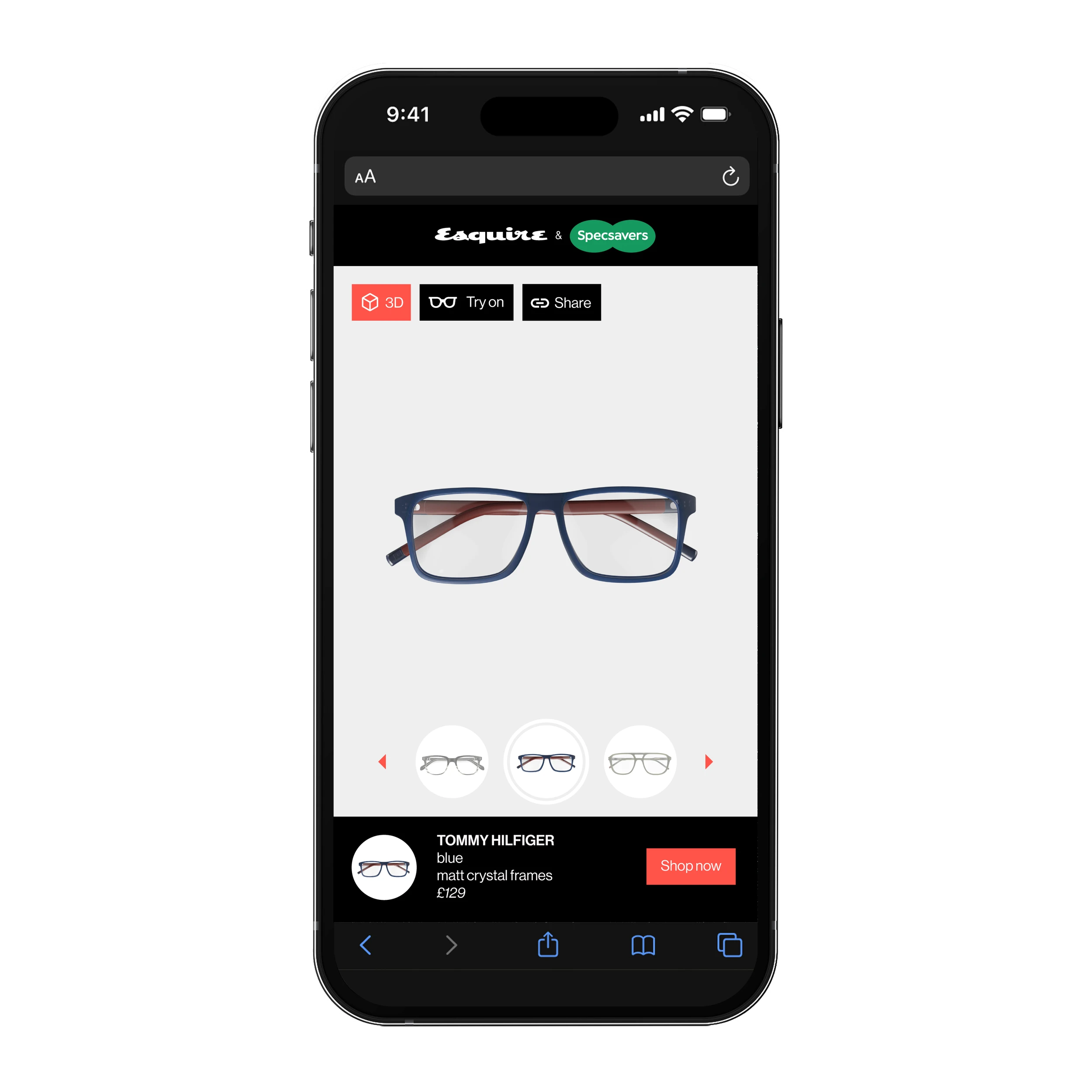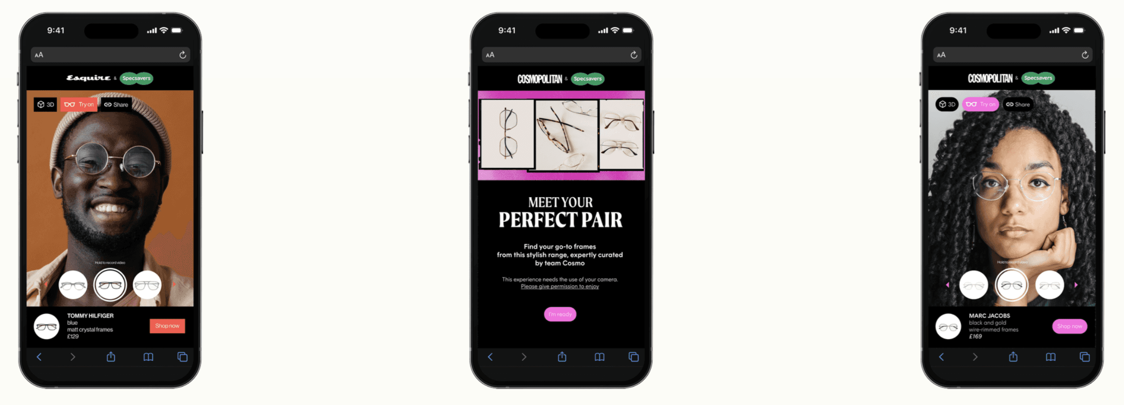 A responsive AR web app designed for Specsavers in collaboration with DeepAR, allowing users to virtually try on glasses in real time. Built for Esquire, Cosmopolitan, and ELLE, the experience focused on clarity, ease of use, and a seamless mobile journey.